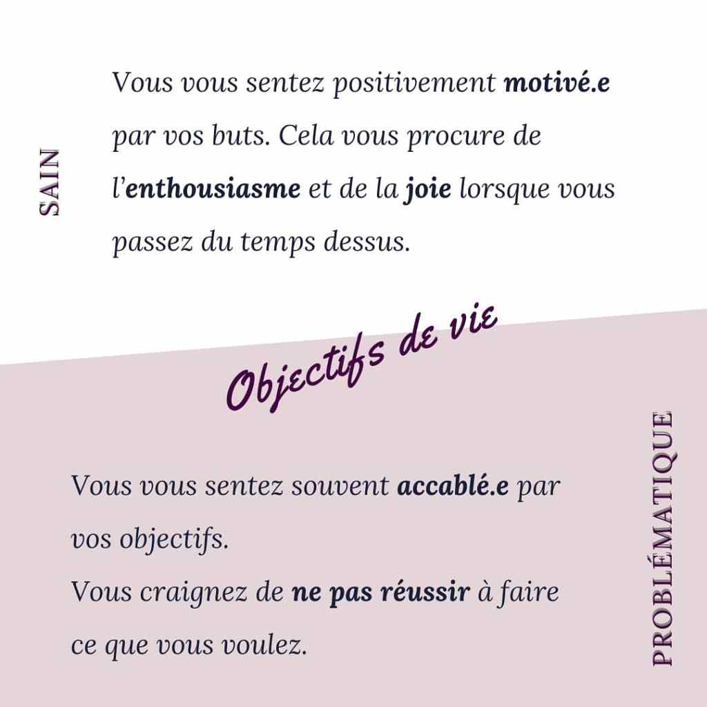 Du coup l’énergie du perfectionniste est davantage impulsée par son anxiété (crainte d’être critiqué, rejeté…), plutôt que par la recherche de réalisation de soi (désir, plaisir, accomplissement).